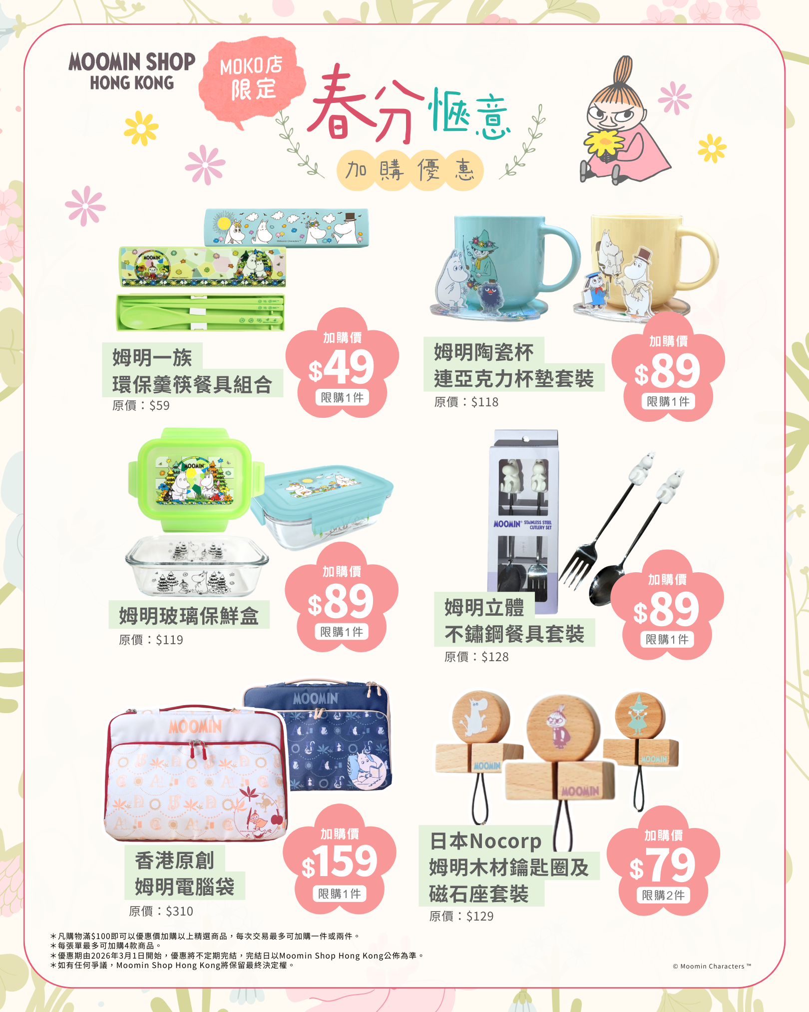 *⏰ 優惠期由 2026年3月1日 開始,優惠將不定期完結,完結日以Moomin Shop Hong Kong公佈為準。